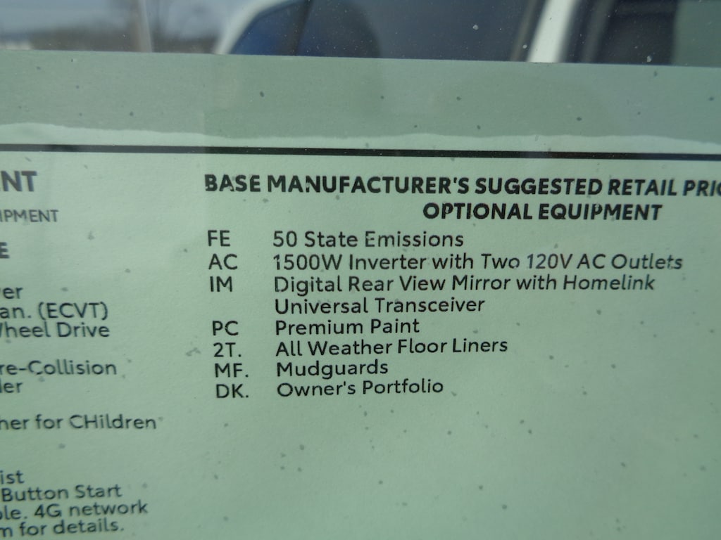 - Emission Rating: Super Ultra Low Emission Vehicle (SULEV)