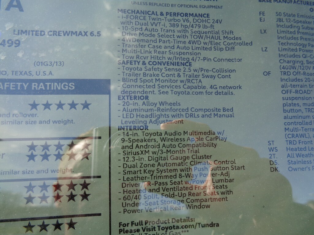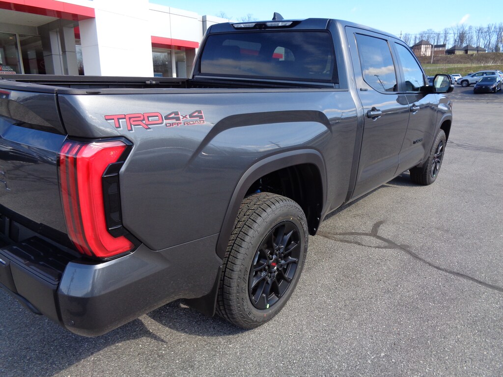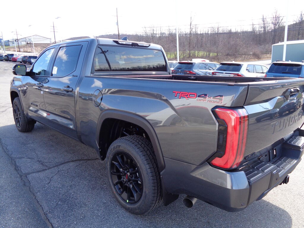 - Chrome 'TUNDRA' and 'LIMITED' door badges, door handles and window molding color-keyed mirror caps and tailgate spoiler gray-painted overfenders
